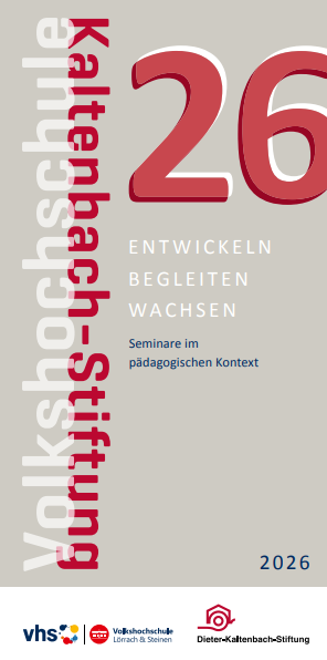Die Dieter-Kaltenbach-Stiftung Lörrach ist seit über 60 Jahren in Lörrach und anderen Orten im Landkreis in unterschiedlichen sozialpädagogischen Arbeitsfeldern tätig. Die Kooperation zwischen der Volkshochschule und der Dieter-Kaltenbach-Stiftung Lörrach währt nun schon seit knapp 50 Jahren. In diesem Sinne wollen beide Institutionen für Menschen, die professionell, privat oder ehrenamtlich mit anderen Menschen arbeiten, inspirierende Seminare anbieten. Gemäß der guten Tradition der Dieter-Kaltenbach-Stiftung werden auch Angebote im kreativ-künstlerischen Bereich gemacht.