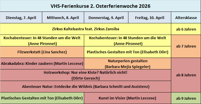 Verpflegung: In den VHS-Ferienkursen bekommen die Kinder kein Mittagessen. Bitte geben Sie Ihrem Kind für den Tag ausreichend Essen mit.